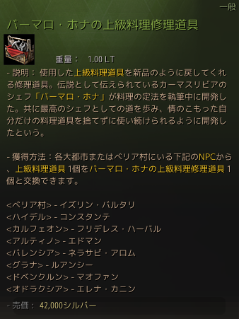 • バーマロ・ホナの最上級/上級料理修理道具