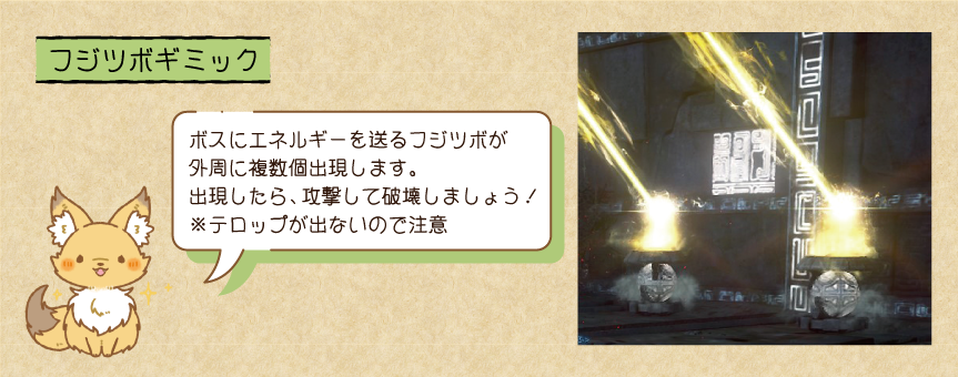 出現したら、攻撃して壊しましょう。 PTの火力が高いようなら、壊さずにボスをゴリ押しでもOK。