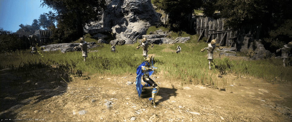 MOBの背後に回り込み素早く盾投げに繋げるコンボ。