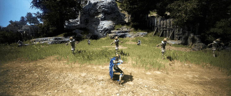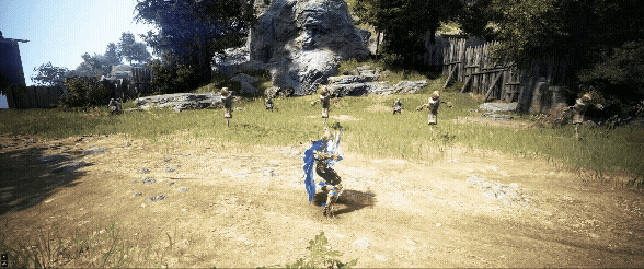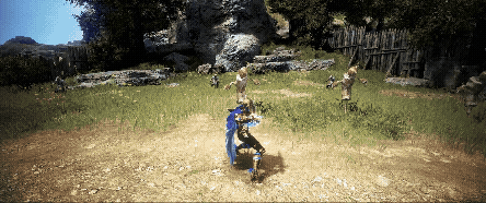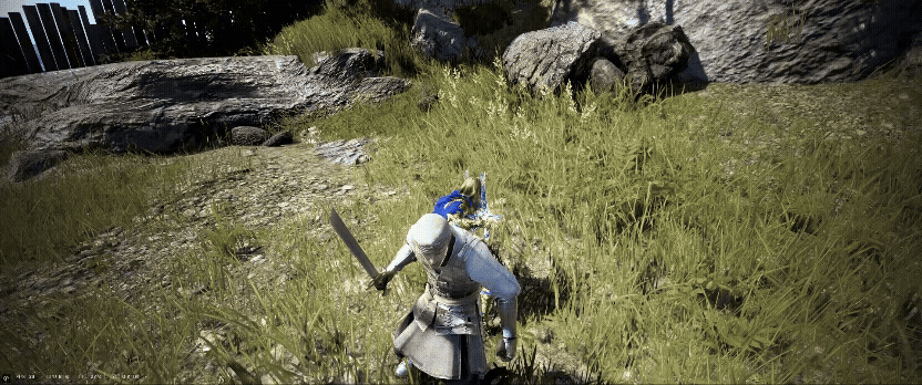 通常ダッシュ → ジャンプ斬り(W + Space + 左クリック) → ジャンプ斬り(Space + 左クリック)