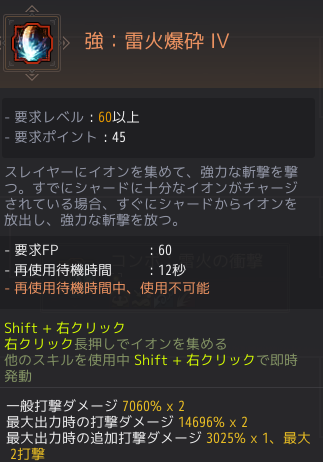 倍率は約5600%と低いがモーションが短いので差し込んでイオン貯めに使いがち。