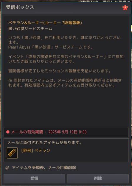同じくベテラン&ルーキーイベントを進めている方や、これから黒い砂漠の冒険を始めていく方の一参考となれば幸いです。