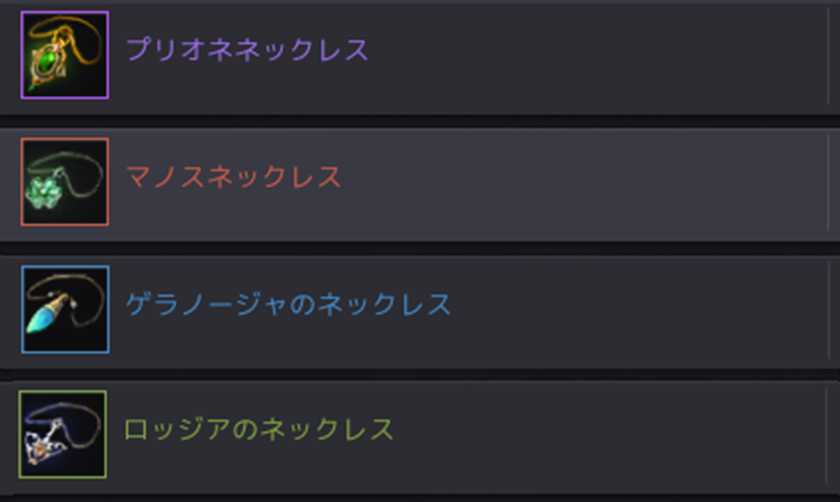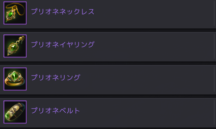 それぞれのアクセサリーに4つの等級があります。