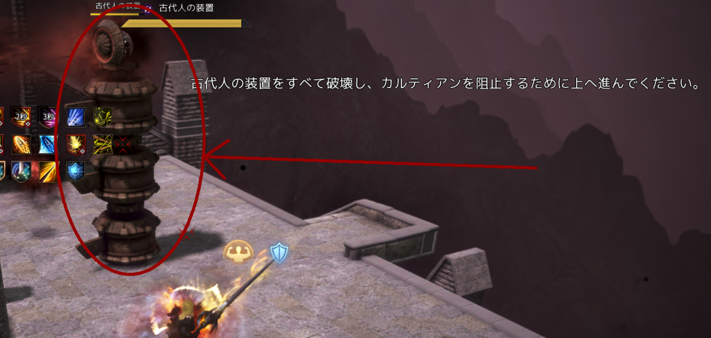 最初、塔のようなステージを登りながら、↓の装置を壊す必要があります。
