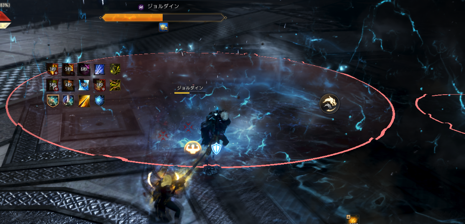 前半と後半があり、前半ではAOEをさけつつジョルダインを殴る、後半はドラゴンを呼び出すのでその竜をまず倒してジョルダインを殴るのが大まかな流れです。
