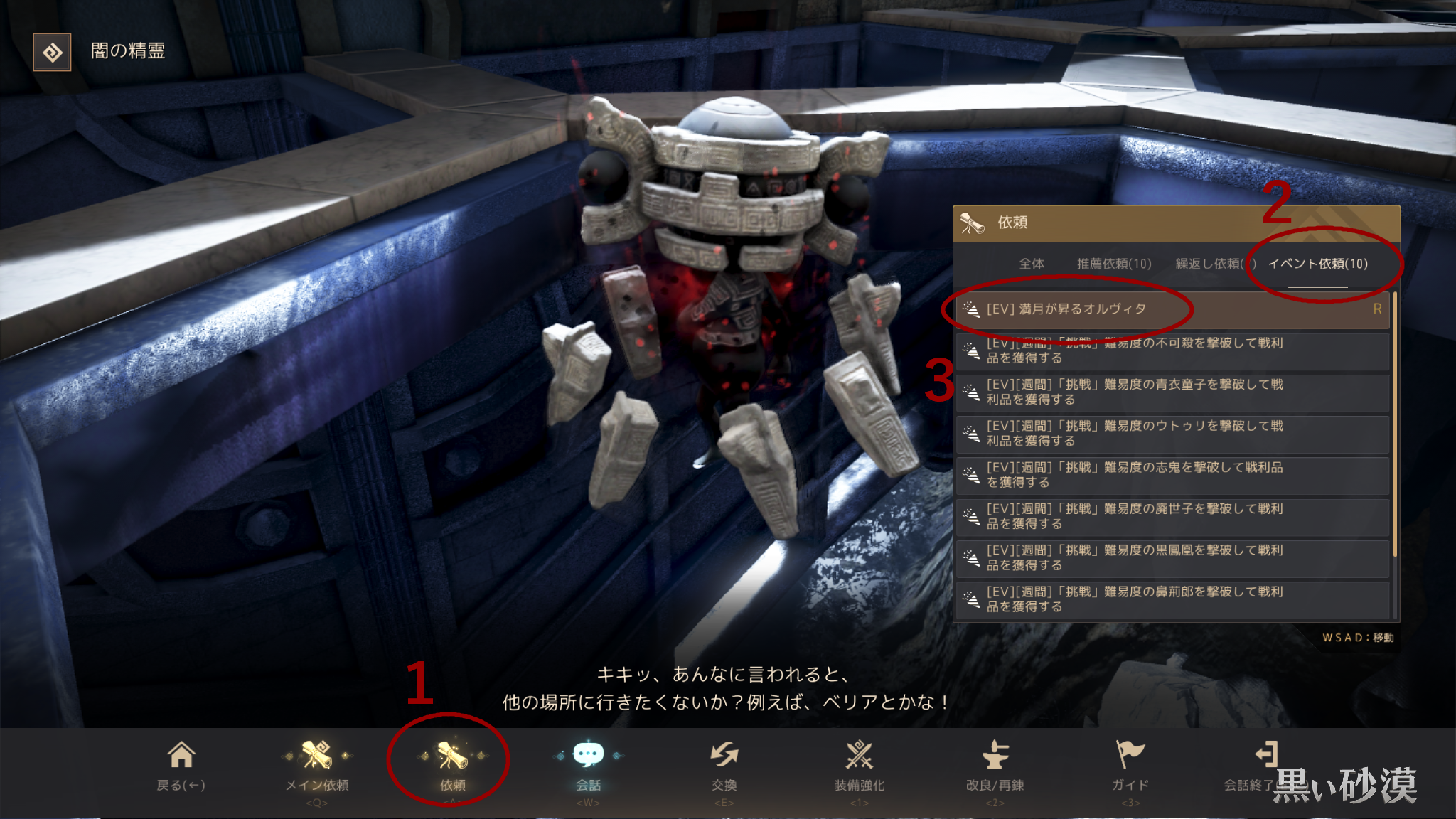 闇の精霊を呼び出し、依頼→イベント依頼から