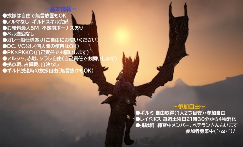基本ソロ、時々PTなのんびり落ち着いた雰囲気の中型ギルドです