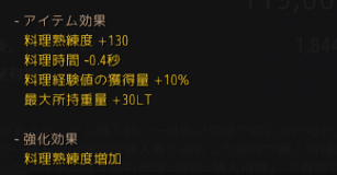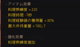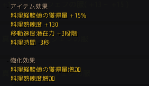 生活系といえば料理が割とメジャーかなと思うので、料理に関する装備を例に出します。