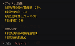 熟練度+28 経験値+2%(マノス熟練度+75、経験値獲得量+8%)