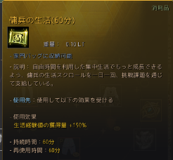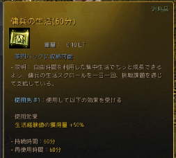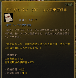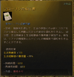 両方とも生活熟練度+100&生活経験値の獲得量+20%です。