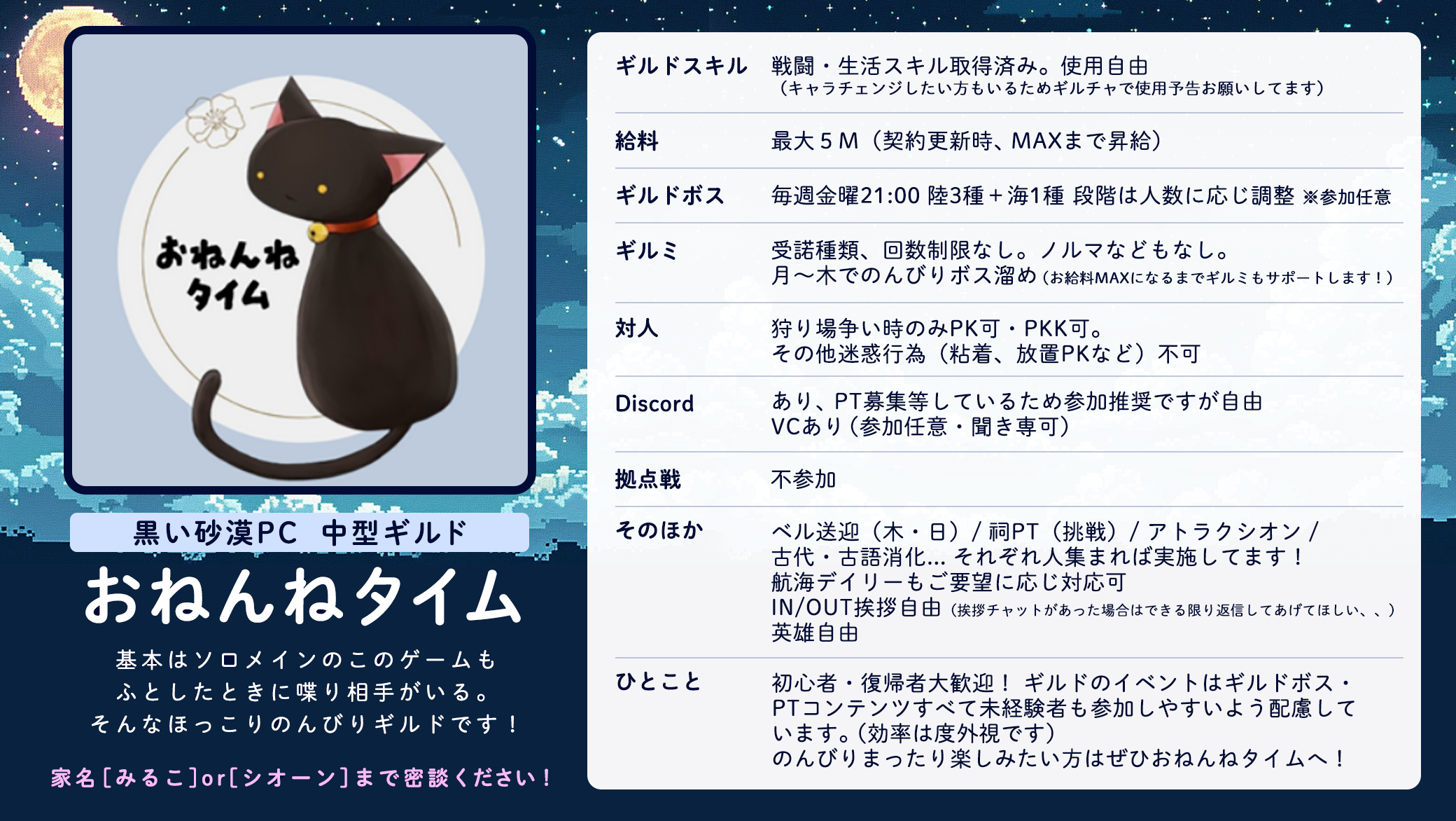 「おねんねタイム」ギルドメンバー募集中!