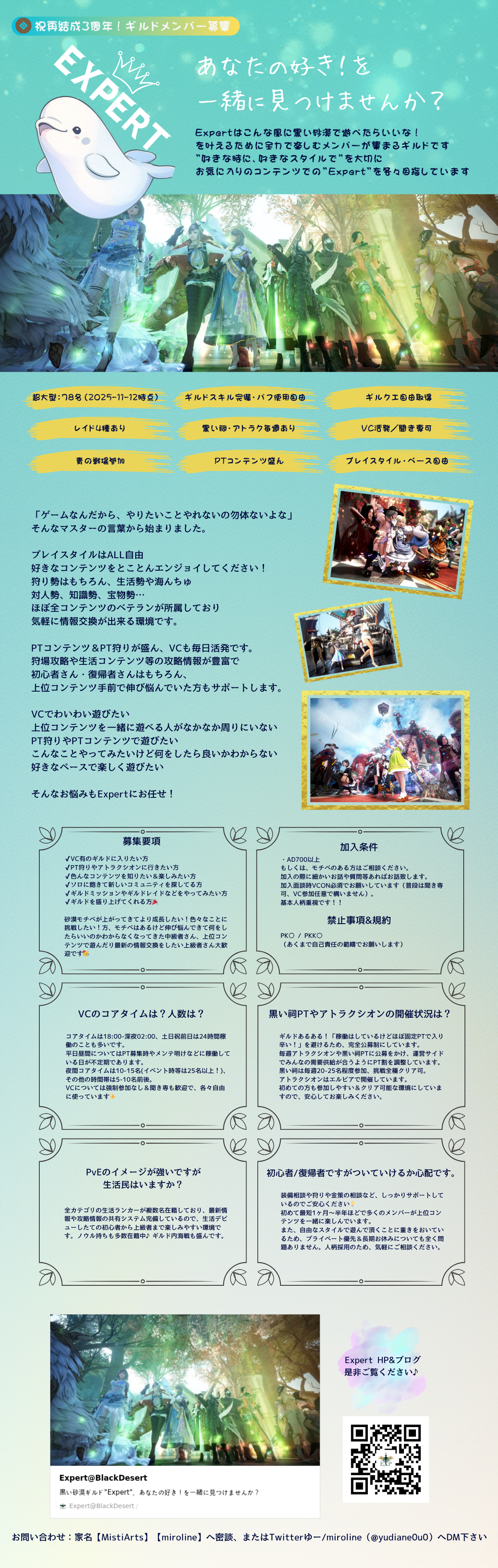 ギルド募集 ホーム 全体 おすすめの投稿 コミュニティ 自由掲示板 議論掲示板 ギルド募集 意見掲示板 情報掲示板 TIP&攻略 クラス攻略 メディア掲示板 スクリーンショット/映像 ファンアート & 創作 Q&A掲示板 知識のオアシス 投稿する #生活 #航海 #冒険 #ギルド #パーティ 【青の戦場参戦☆Expert】VCあり&PT狩りや黒い祠・アトラクシオン盛ん! yudiane-日本 2025.11.12 18:43 522 0 2 お気に入り 共有する URLコピー Facebook X 最近の修正日時 : 2025.11.12 19:46 HP&ブログ も是非ご覧ください♪⇒https://expert-bdo.com/ #VCあり #黒い祠 #アトラクシオン #オルン #PTコンテンツ #青の戦場 #狩り #生活 最新ブログ: あっという間に!祝再結成3周年!! 甲板を磨く、それは・・! 2 yudiane-日本 17 0 Lv 非公開 yudiane コメント 0 通報 誹謗中傷 迷惑行為 連続投稿 RMT スパム/宣伝 その他 コメント 全体 登録日順 検索順 コメント順 推奨順 話題順 全体期間 1日以内 7日以内 30日以内 100日以内 1年以内 0 【新規・復帰】夏をGMギルドと共に!掲示板 2025.07.24 0 6.7K 冒険者の集い★ 2025.07.24 6 [開催中のイベント] 今週のイベントは? 2023.02.28 0 29.5K 黒い砂漠 2023.02.28 19 黒い砂漠が初めての冒険者の皆様のために準備したA to Z! 2022.12.21 2 24.7K 黒い砂漠 2022.12.21 8 エント研究室動画集 2021.05.12 1 16.7K 黒い砂漠 2021.05.12 49 コミュニティの利用にあたって 2020.03.25 17 32.2K 黒い砂漠 2020.03.25 0 [自由掲示板] 聞いてみて!【GMの焚火ラジオ】 1 時間前 0 10 南なみ-日本 1 時間前 0 [スクリーンショット/映像] 【ギルドイベント】CactuSソラレ大会 3 時間前 #イベント #スクリーンショット 0 17 GlycinemaX-日本 3 時間前 0 [スクリーンショット/映像] [私だけの宴会]変更後のボス出現時刻表 4 時間前 #イベント #スクリーンショット 0 27 資本主義の豚ひよぽん-日本 4 時間前 0 [ギルド募集] [成長ギルド]戦争しない系ギルドの老舗【ぼっち民の集い】メンバー募集中 5 時間前 0 31 ポキィル-日本 5 時間前 0 [スクリーンショット/映像] [私だけの宴会] 5 時間前 0 20 ヒジリo-日本 5 時間前 0 [ギルド募集] 大一大万大吉で* Le Jardin Secretですっ✨(,,>᎑<,,)*•❥ 6 時間前 #生活 #航海 #ギルド #パーティ #戦闘 0 51 むぎこむ 6 時間前 0 [ギルド募集] 2024年7月にトリニティで起きた事を風化させない為の仲間を募集しています! 6 時間前 #冒険 #ギルド #拠点戦 #占領戦 #戦闘 0 46 シャイミン-日本 6 時間前 0 [スクリーンショット/映像] [私だけの宴会] 7 時間前 #イベント 0 23 ライヘルト-日本 7 時間前 0 [スクリーンショット/映像] [私だけの宴会]一緒に楽しむ2025カルフェオン宴会 7 時間前 #イベント 0 23 祇園精にゃの鐘の声 7 時間前 0 [ギルド募集] 【袖口にフォーク】 ゆるーく募集 7 時間前 #生活 #冒険 #ギルド 0 47 ぶらんち-日本 7 時間前 0 [スクリーンショット/映像] [私だけの宴会] 8 時間前 #イベント 0 25 バント 8 時間前 1 [ギルド募集] [成長ギルド] [やわらかめ] [胃に優しくサッと溶ける] メンバー募集中~詳しくはCXPのサイトで! 8 時間前 0 43 Brody-日本 8 時間前 0 [スクリーンショット/映像] 私だけの宴会 8 時間前 0 30 gamer-日本 8 時間前 0 [スクリーンショット/映像] [私だけの宴会] 9 時間前 0 34 黒い塊 9 時間前 0 [スクリーンショット/映像] [私だけの宴会] 9 時間前 0 36 チャー研-日本 9 時間前 0 [スクリーンショット/映像] [私だけの宴会] 9 時間前 0 22 Clara-日本 9 時間前 2 [スクリーンショット/映像] [ギルドイベント支援]ボサノヴァカフェ「かんこぴ☆真似して家具はやおき競争!」 10 時間前 #イベント #スクリーンショット 0 37 TADA-日本 10 時間前 0 [スクリーンショット/映像] 私だけの宴会 10 時間前 0 37 xべにおx-日本 10 時間前 0 [スクリーンショット/映像] 私だけの宴会 10 時間前 0 28 亜樹-日本 10 時間前 0 [ギルド募集] 【成長ギルド Pick up中!】マイペース/みんなと遊ぶ のバランス〇 小型ギルドゆにぶぇーるです! 11 時間前 #冒険 #ギルド #パーティ #戦闘 0 49 酒飲み共 11 時間前 0 [スクリーンショット/映像] [私だけの宴会] 12 時間前 0 37 TカナメバッカニアT-日本 12 時間前 0 [スクリーンショット/映像] [私だけの宴会]海へGO! 12 時間前 #イベント 0 41 Cancellara-日本 12 時間前 0 [スクリーンショット/映像] 私だけの宴会 13 時間前 #スクリーンショット 0 33 ぴょん家 13 時間前 0 [スクリーンショット/映像] 私だけの宴会 13 時間前 0 38 groow-日本 13 時間前 0 [スクリーンショット/映像] [私だけの宴会] 13 時間前 0 37 xイサミx-日本 13 時間前 12345678910next 検索語句を入力してください。 タイトル+内容 タイトル 作成者 検索語句を入力してください。 検索 投稿は1万個単位で検索されます。