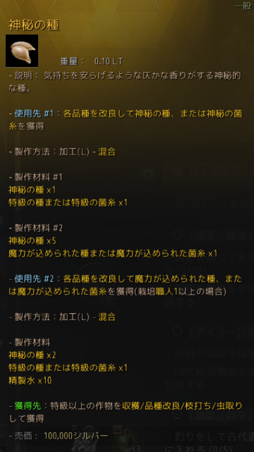 また作物の種は魔力のうえに、さらに神秘の種という種があって、