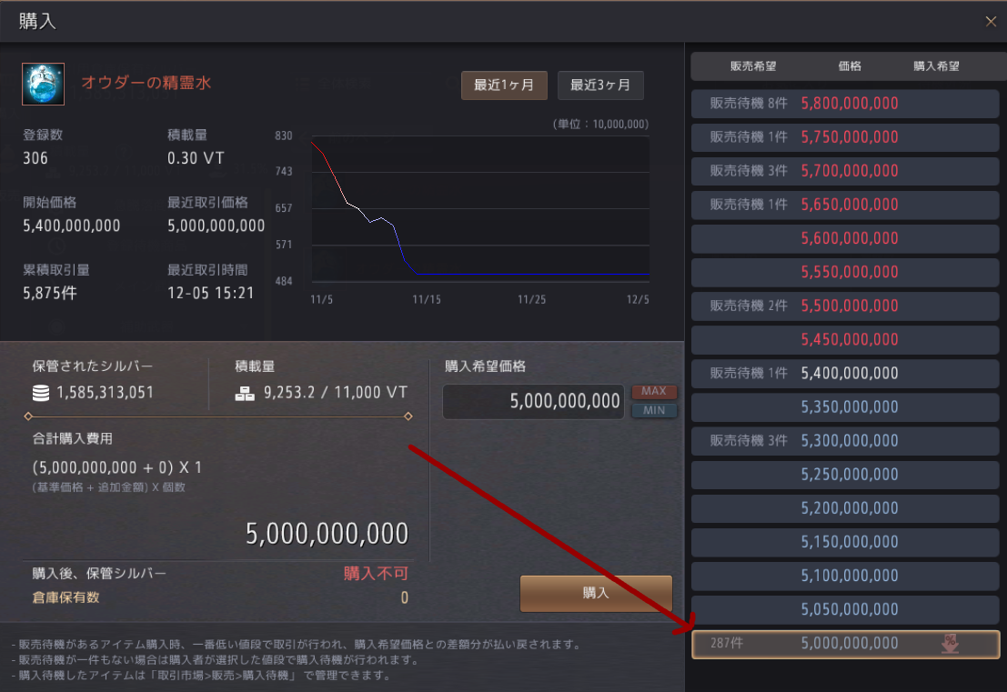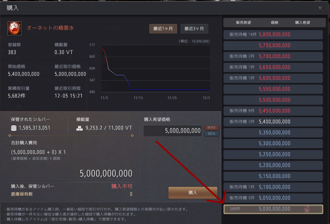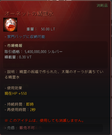 50億?!と思われるかも知れませんが、mob狩りの時給が500M(5億)シルバーだとすると10時間、300M(3億)シルバーでも17時間狩りをすれば買えます。