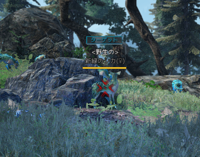 ここはオーディリタの生態知識で、草サイ、新緑のシカ(♂と♀)、漆黒オオカミ、漆黒ライオンなどがいます。気を付けるのは、狩猟で倒す動物は<野生の>とついていること。例えばサイを倒そうと思って狙っていると、この野生のがついていないサイが近くの場所にいます。