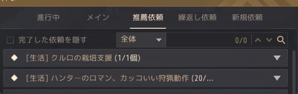 狩猟デビュー第4弾は、一回、リアナのデイリーから離れて、推薦依頼の「[生活]ハンターのロマン、カッコいい狩猟動作」についてお伝えします。