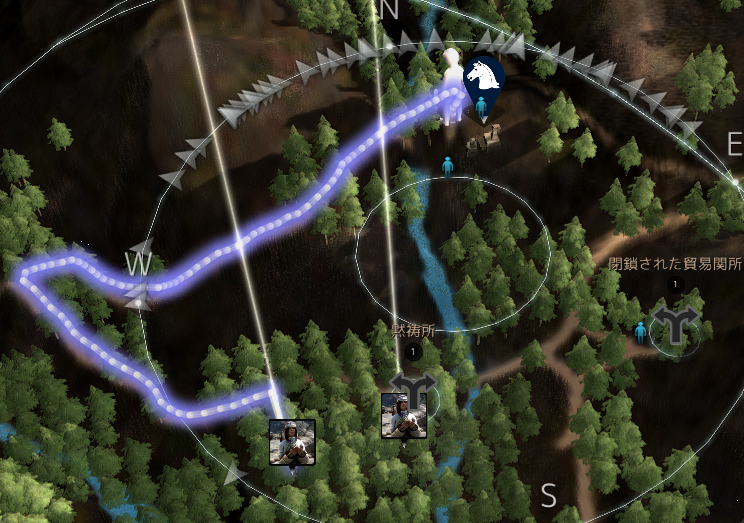氷結オオカミまでちょっと距離があるので、馬で行きます。馬は、道においてあげてください。オオカミはアクティブなので、中に一緒に入ると攻撃されてしまいます。