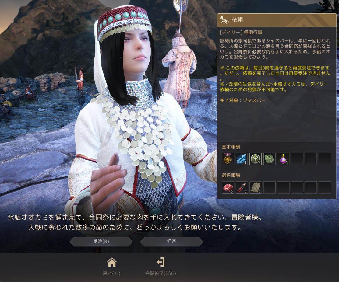 狩猟デビュー第5弾は、第3弾の続き、リアナのデイリークエから「野生の果てしない冬の山」です!