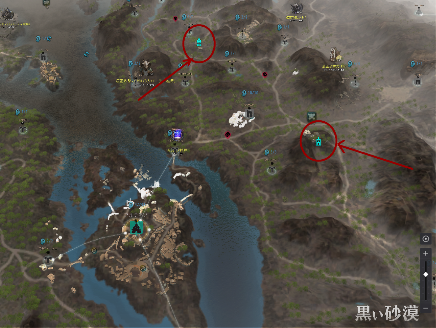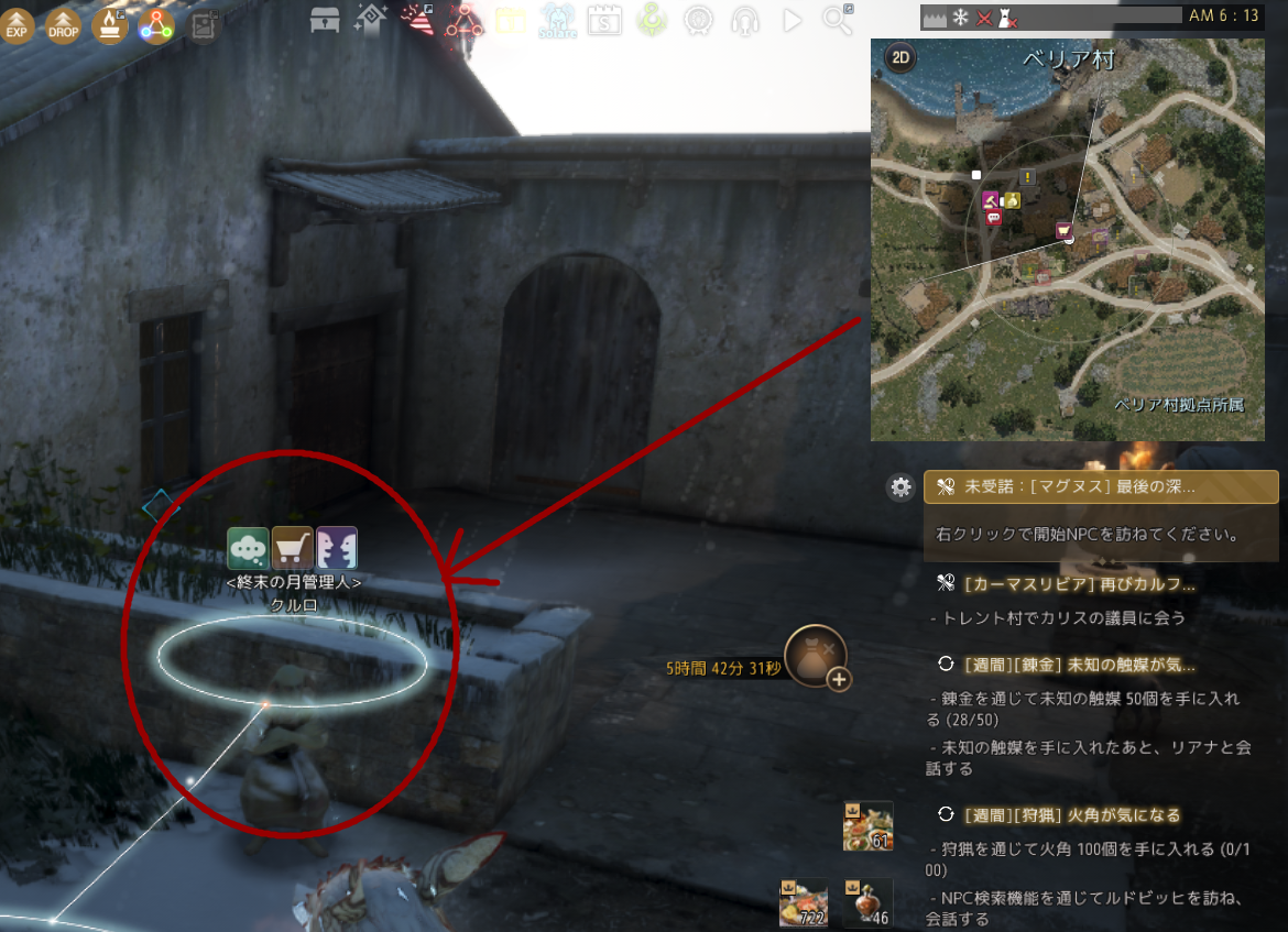 下矢印なアイコンをクリックするとルートがしかれ、ベリア村のこの人まで案内されます。