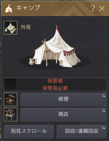 例えば狩り場にこもるとき、いちいちテントを開けるところまで戻らなくてもよくなります。