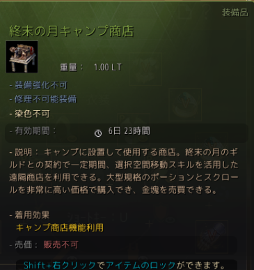 課金テントと比べると、使用期限があることと、商店のラインナップに違いがあります。