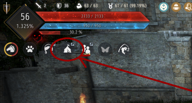 すると、通常画面左上にテントのアイコンが現れます。