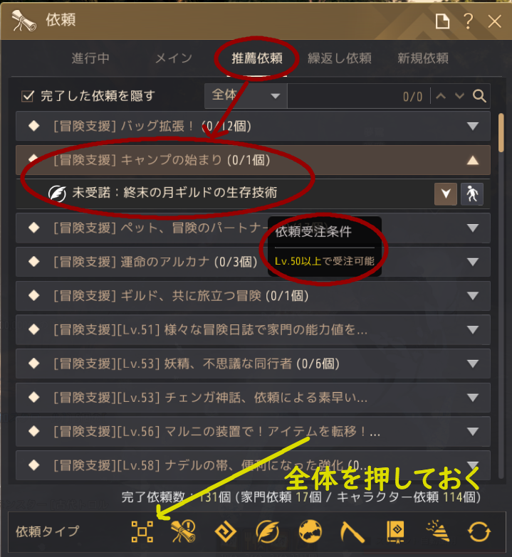 レベル50以上が条件です。あと下の依頼タイプは「全体」を押しておいてください。