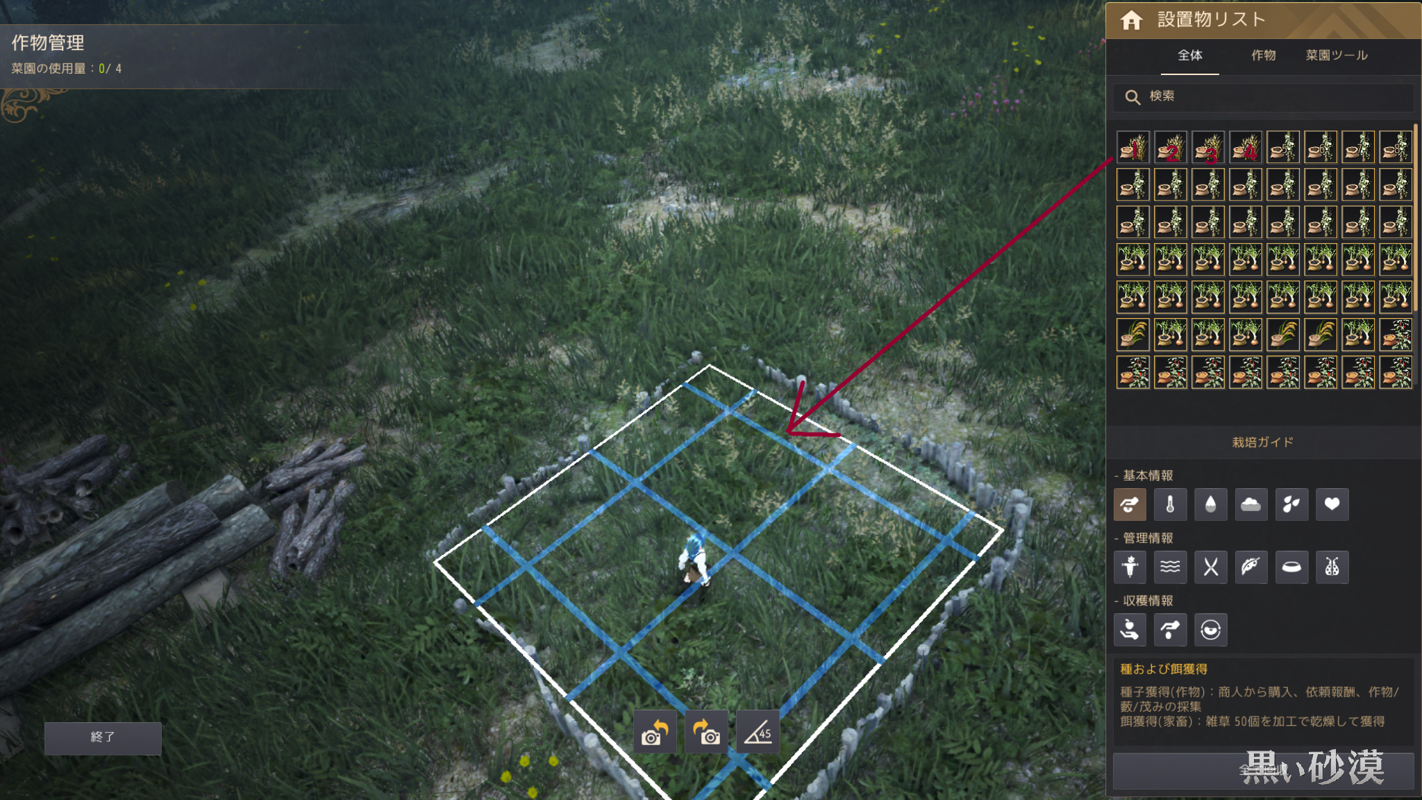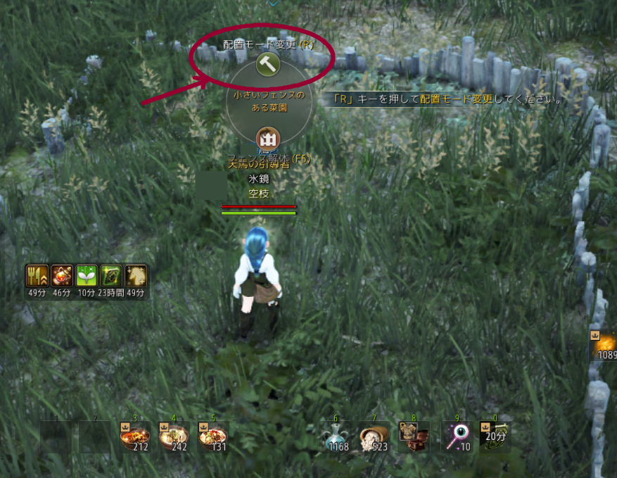 あと、一度植えた種を収穫前に取り除きたい場合は、配置画面(フェンス中央でR)から
