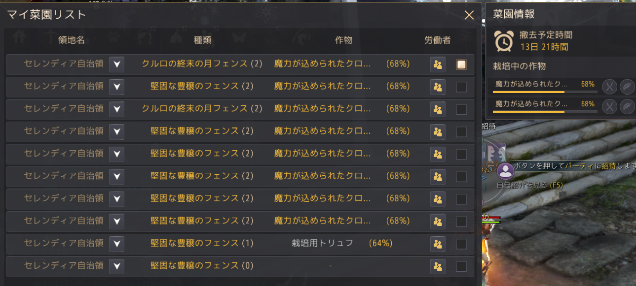 ※フェンスは課金をして買うこともできます。強いと同等の10マスフェンスが1家門あたり8つまで購入可能です。またこの課金フェンスも、栽培名匠以上になるとサイズダウンしたものに交換してもらえます(終末の月管理人から)