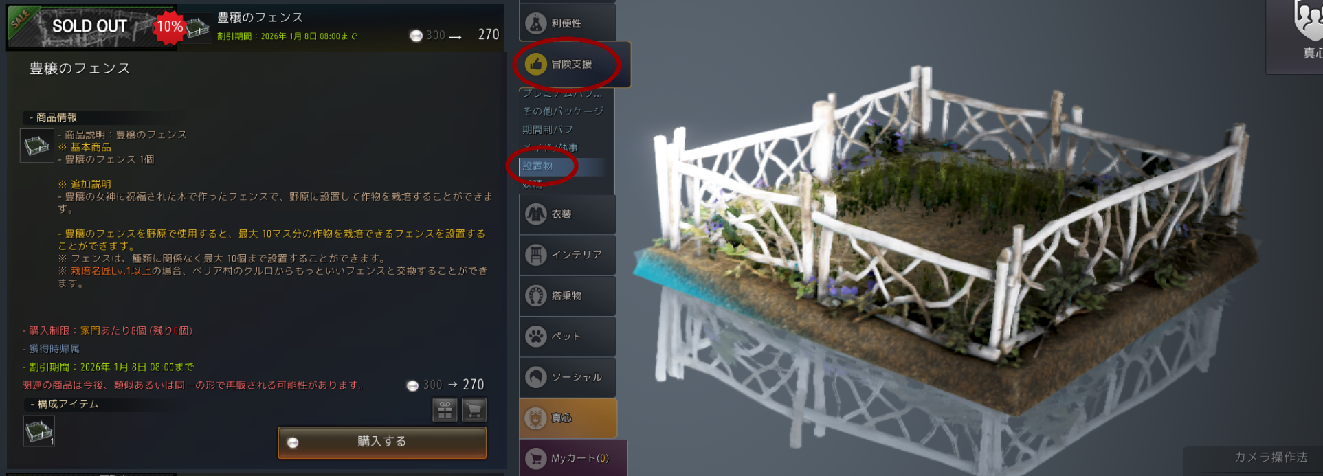 ※また、フェンスは1家門で最大10まで借りられます。