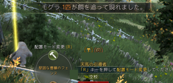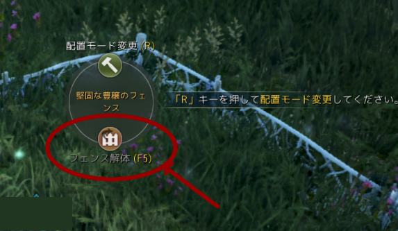 フェンスの設置は「危険地帯」(画面右上ミニマップに表示される地名が赤文字になっているところ)にしか出来ず、あとは岩や木があるとできないなど、多少の制約があります。