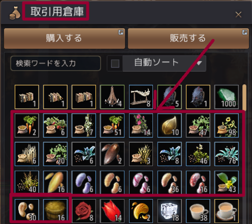 ただし、魔力の種は取引用倉庫に入りません。(特級までなら入る)