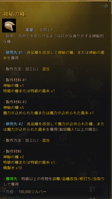 説明に書いてあるように、これは魔力の種を「神秘の種」 にする、あるいは特級の種を魔力の種にすることができます。