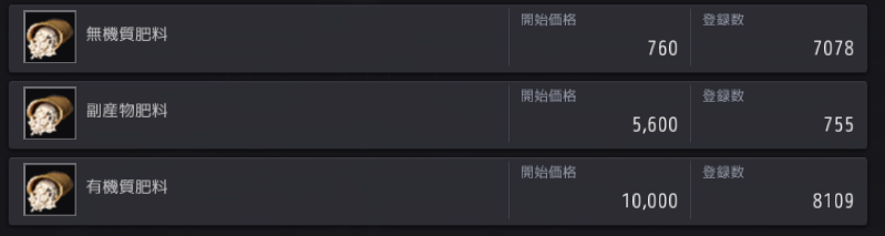 肥料は穀物類(小麦、大麦、トウモロコシ、ジャガイモなど)をLキー加工から「乾燥」させると無機質肥料。無機質に料理商人が売っている発酵剤を「混合」すると副産物肥料。副産物に精製水を「混合」すると有機質肥料になります。