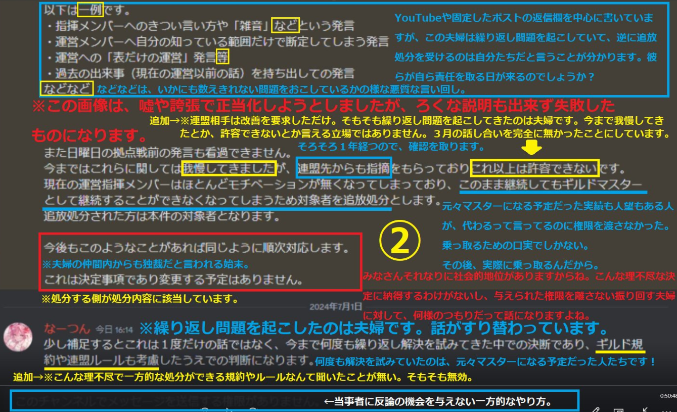 内容は事実で問題は継続している。個別の事案などに対してはそれぞれの背景や経緯を総合的に判断して対応するのでは?に対し、お客様への制裁におかれましては、あくまでチャット内容からの利用制限であります。冒険者様が訴えられている該当ギルドに関する内容そのものにおきましては、調査を行ってほしいと訴えをいただいておりますお声のもと、本件の担当部署にて確認・調査を進行させていただきます。