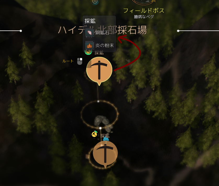 鉄鉱石はハイデルやベリア近辺の「長石」を採鉱すると手に入るのですが、銅鉱石はこの近辺での採鉱による入手は難しいので、労働者採集(もしくは取引所購入)のほうがオススメです。