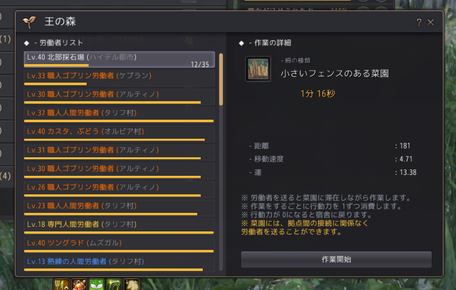 作物はそのままだと枝打ちの必要が出たり、虫がついたりします。それで枯れることはないのですが、成長時間が遅くなります。自分で枝打ちや害虫駆除をすることも可能ですが、労働者にすべて任せることも可能です。収穫などをするわけではなく、畑の管理(枝打ちと虫取り)だけしてくれます。