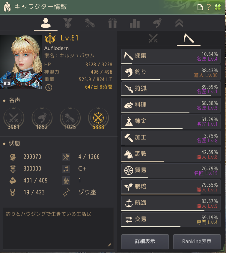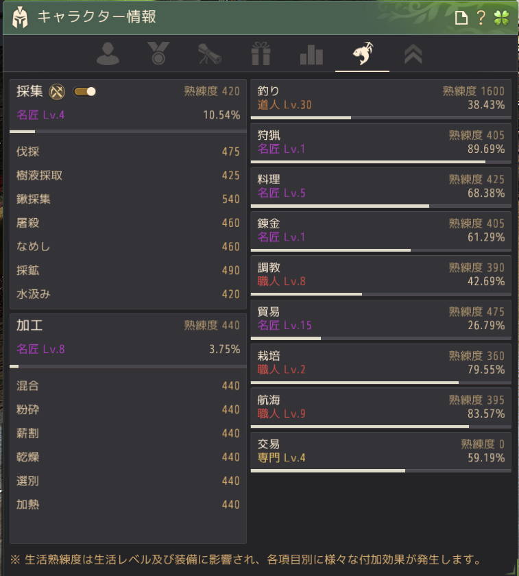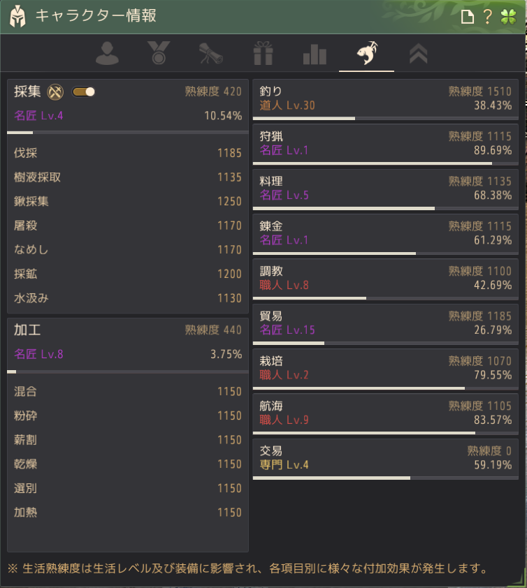 キャラクター情報の表示で確認できる貿易のレベルが基準となります。