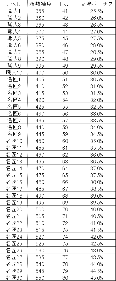 これにより、交渉ボーナスの増加値は生活レベルが基準となります。