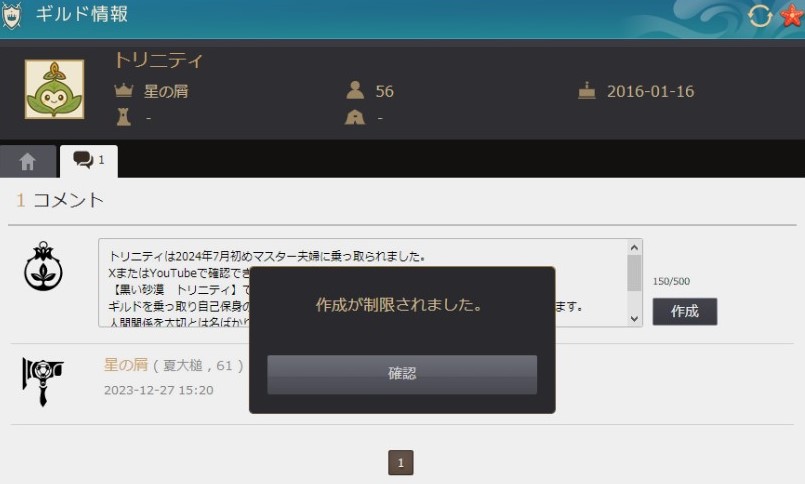 内容は事実で問題は継続している。個別の事案などに対してはそれぞれの背景や経緯を総合的に判断して対応するのでは?に対し、お客様への制裁におかれましては、あくまでチャット内容からの利用制限であります。冒険者様が訴えられている該当ギルドに関する内容そのものにおきましては、調査を行ってほしいと訴えをいただいておりますお声のもと、本件の担当部署にて確認・調査を進行させていただきます。
