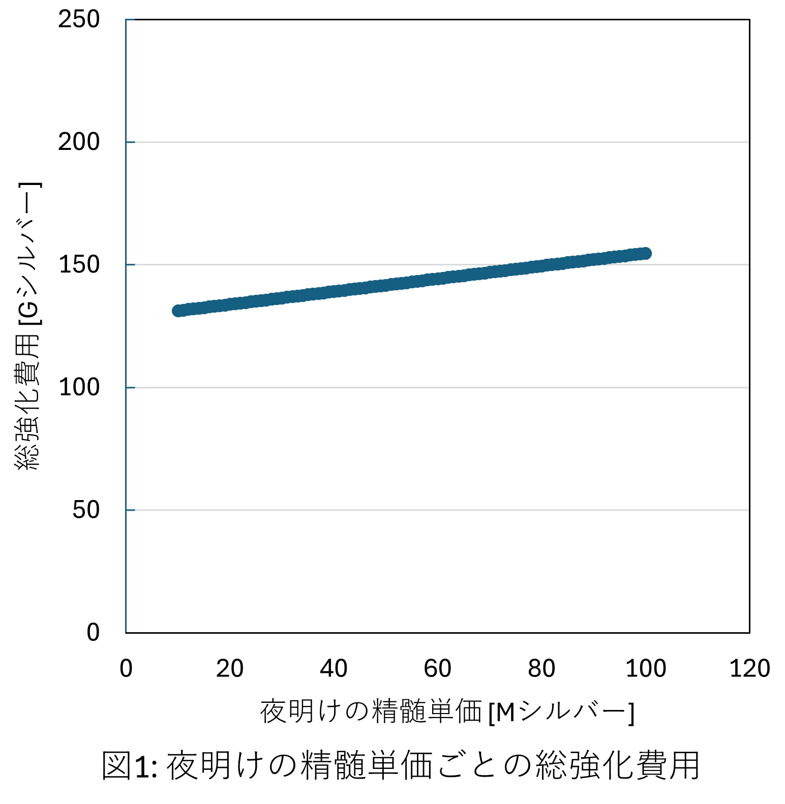 強化にかかる費用のほとんど(約9割)がクロン石代で、残りの約1割が夜明けの精髄