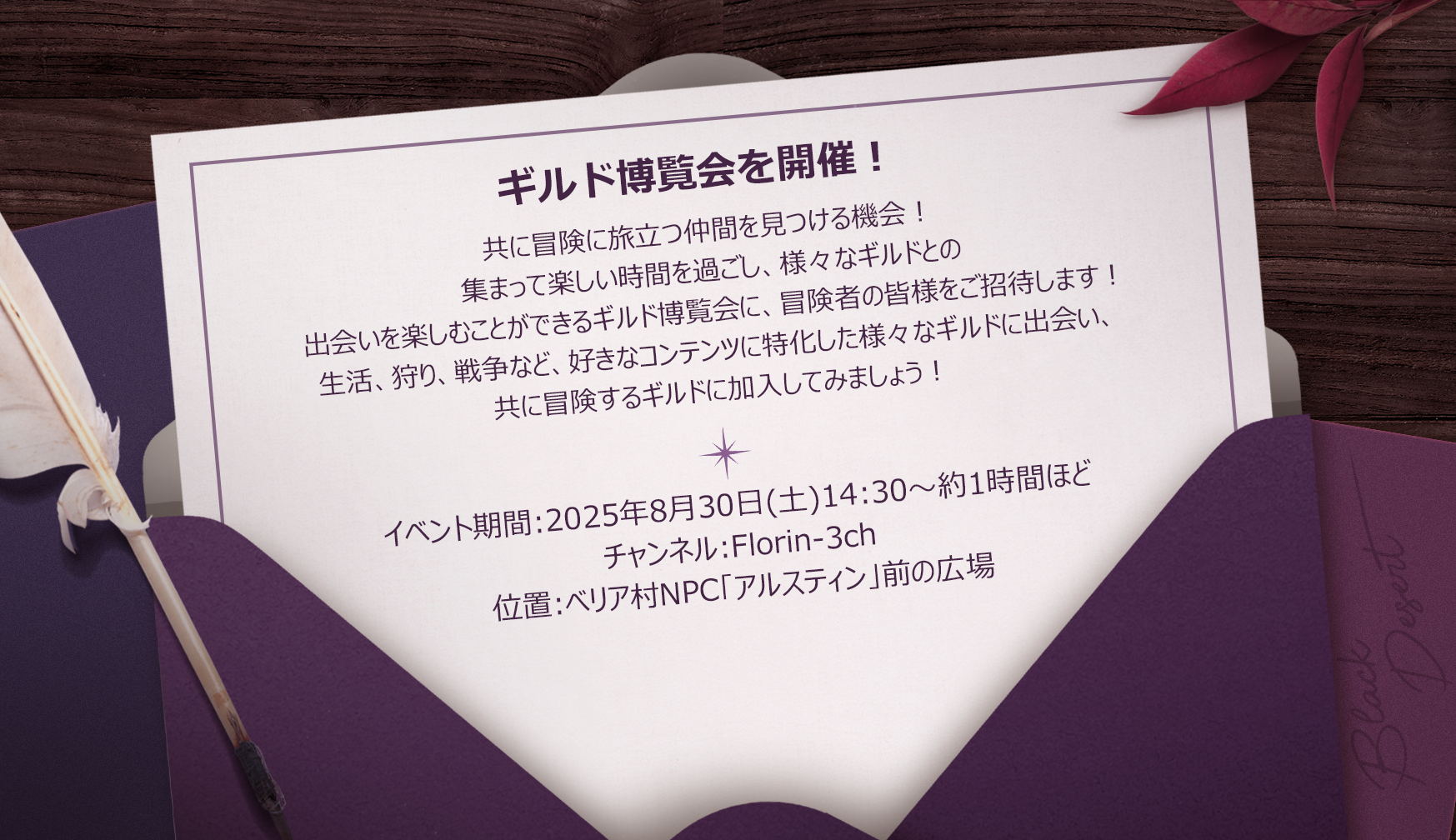 * ギルド博覧会に選定されたギルドは2025年8月30日(土)に行われるギルド博覧会にご参加いただく必要があり、参加していない場合はイベント報酬支給から除外されます。