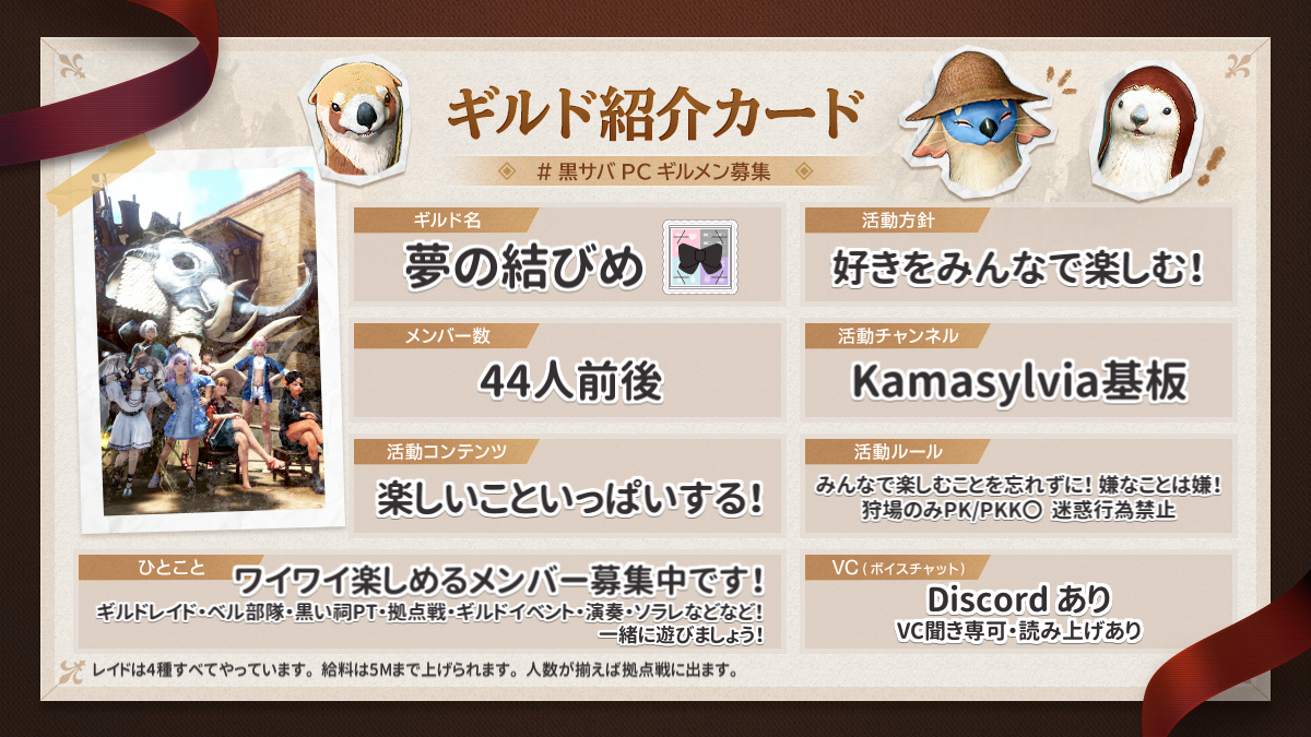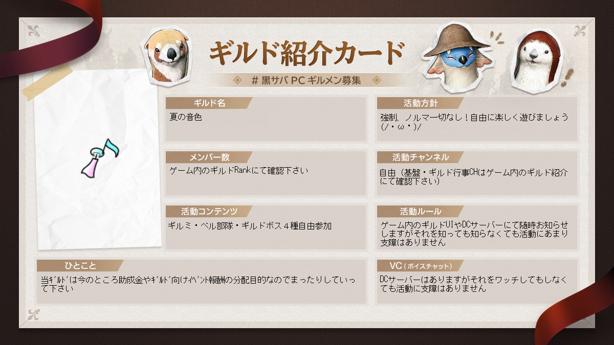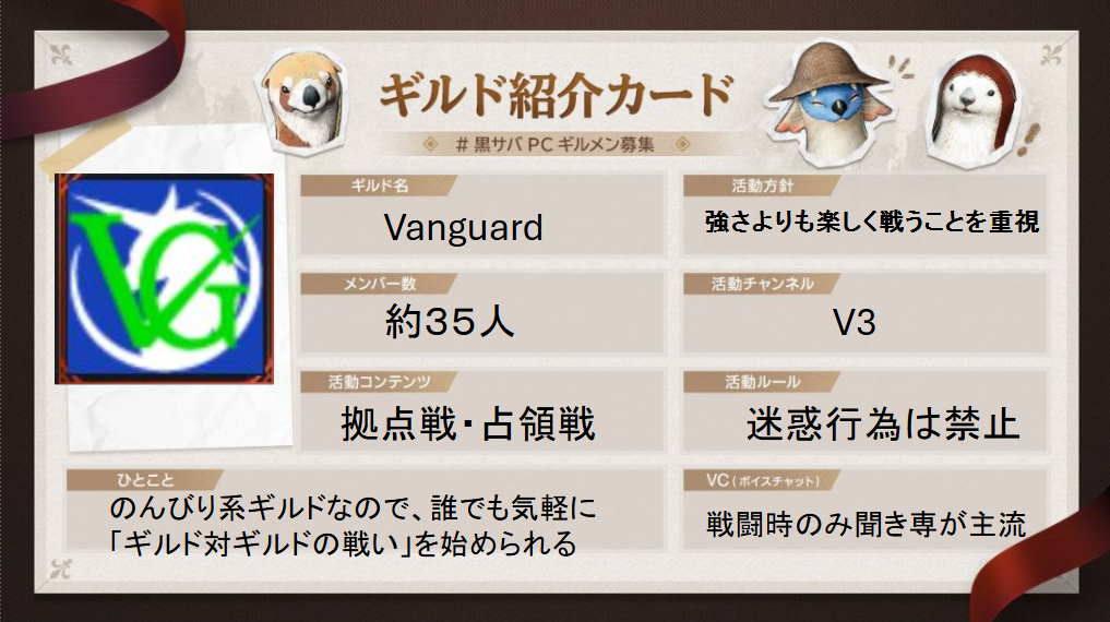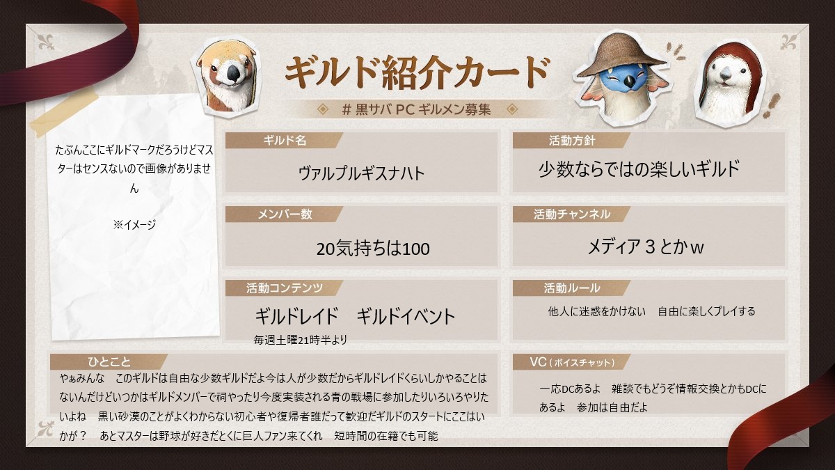 * ギルド紹介カードおよびスクリーンショットをクリックすると拡大されます。