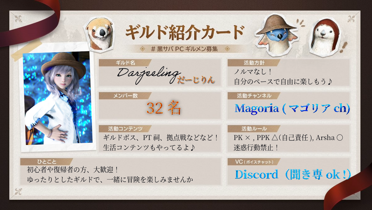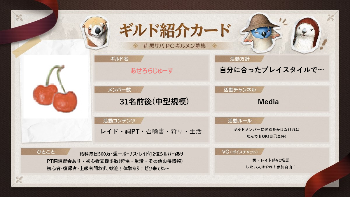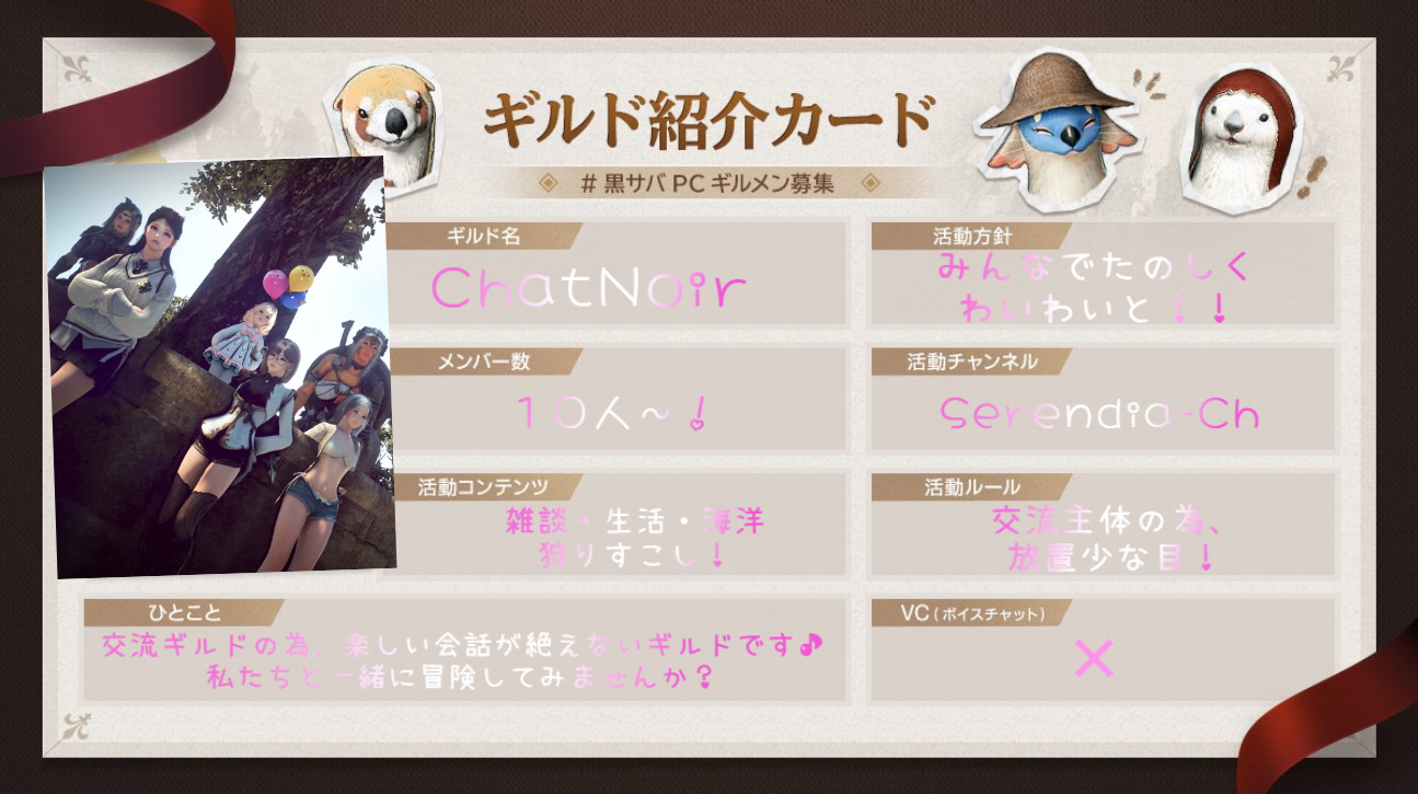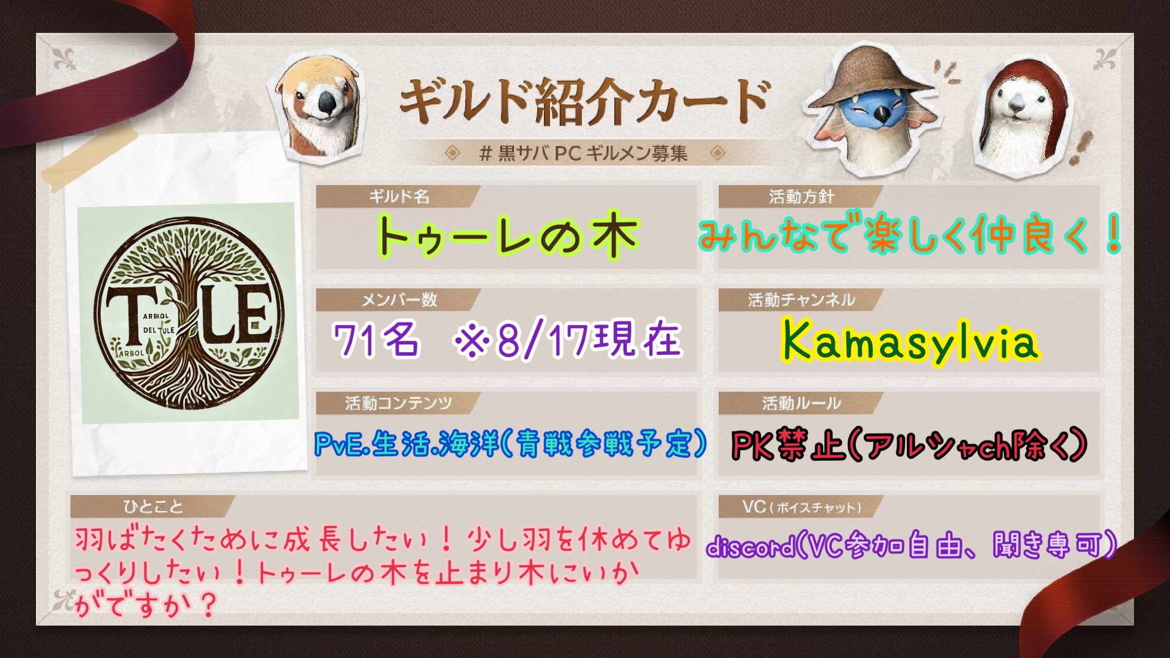 * ギルド紹介カードおよびスクリーンショットをクリックすると拡大されます。