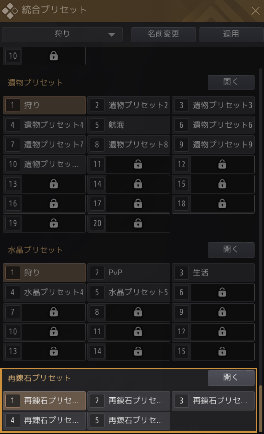 - 再錬石をプリセットとして指定して使用できるようになり、統合プリセットにも追加されました。