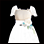 全体的に白とベージュでまとめ、スカートで小籠包の丸みを、シューズのひらひらで小籠包の結び口を表現。