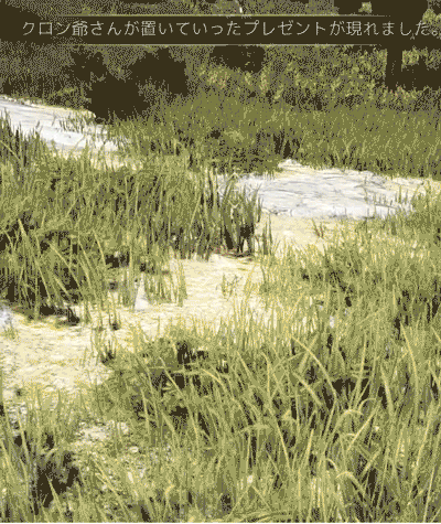 ベリアの上空にソリに乗ったクロン爺さんが現れてプレゼントを落とします!