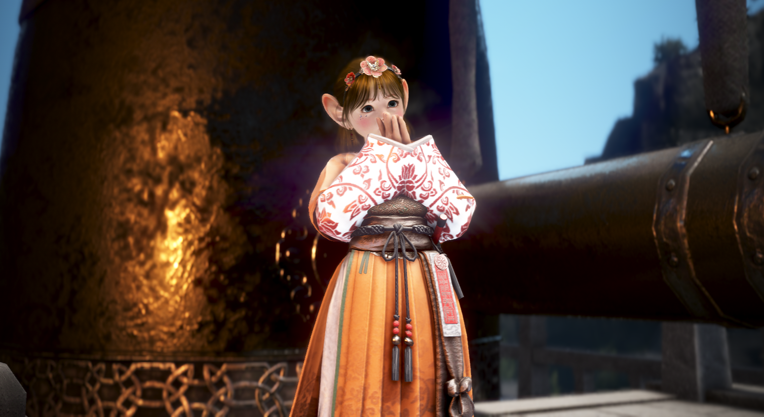 初日の出をイメージしてオレンジ色の染色をメインにコーディネートしてみました! 冒険者の皆さんが幸せな1年になりますように🙏✨️ 着用衣装:椿の花冠、クリナリアンブーツ、めろめろうさぎグローブ 星屑の装飾、紅焔イヤリング 家名:GMラニー #月刊SABAKU1月号 |