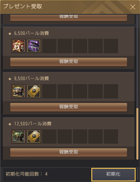 ※ 月の祝福の初期化後、報酬の受領が円滑に行えない場合は、一度パール商店の画面を閉じてから再度開くことで正常に受領できます。
