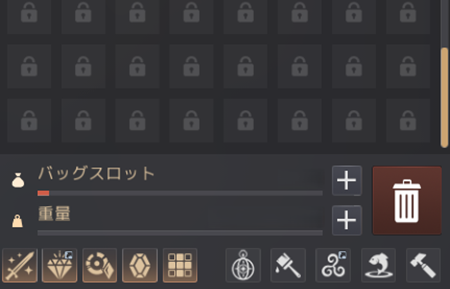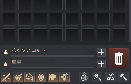 - バッグの空き容量が不足している場合、大量加工は進行できません。